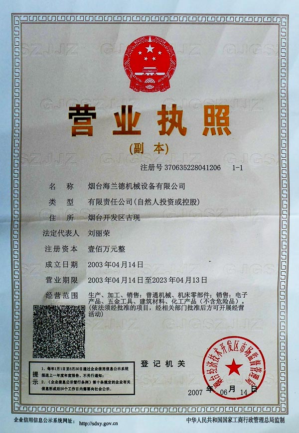 所有版權(quán):煙臺海蘭德機(jī)械設(shè)備有限公司 地址:山東省煙臺市開發(fā)區(qū)廣州路2號 電話:0535-6382084 傳真:0535-6943976