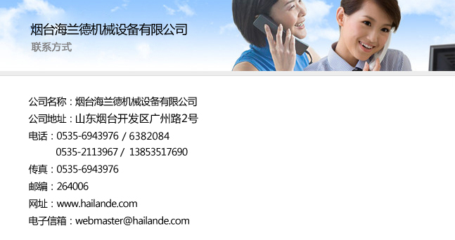 所有版權(quán):煙臺(tái)海蘭德機(jī)械設(shè)備有限公司 地址:山東省煙臺(tái)市開發(fā)區(qū)廣州路2號(hào) 電話:0535-6382084 傳真:0535-6943976